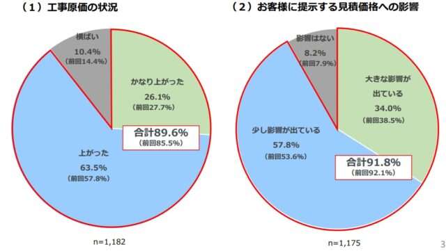 建材・設備値上がり分「顧客が負担」増加 工務店アンケート