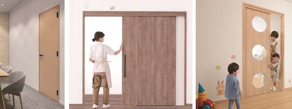 右:「OMOIYARIキッズドア」幼保施設向けのドア