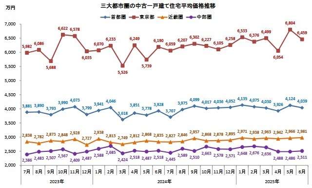 東京カンテイ(東京都品川区)は7月10日、6月の主要都市における中古木造一戸建ての平均価格動向を発表した。