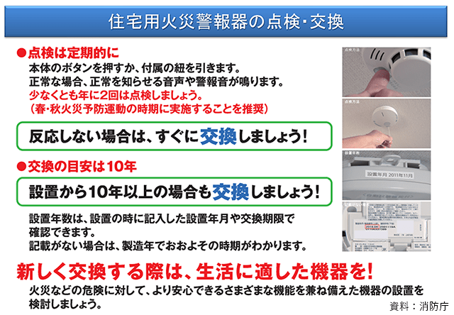 家庭用警報器の点検・交換について(消防庁HP)