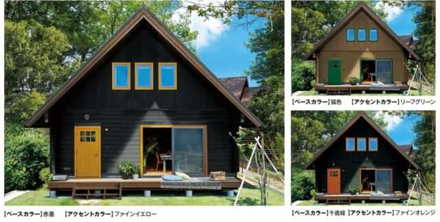 「風のログ」外観。落ち着いた色合いのベースカラーに、遊びごころのあるアクセントカラーを取り入れた。3タイプから選べる