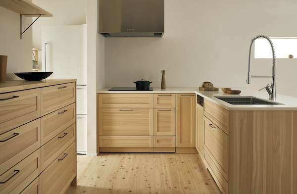 ウッドワン(広島県廿日市市)は7月16日、無垢の木を使ったキッチン「su:iji(スイージー)」の扉に12年ぶりに新樹種として国産の桧(ヒノキ)を追加した。