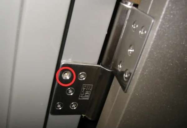 指摘された不具合の例。玄関ドアの丁番でビスが1本不足