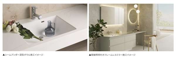さらに、シリーズ全体のオプションとして「間接照明付きフレームレスミラー」を新たに設定した。