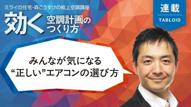 住宅の高性能化が進む中、空調は住まい手任せにせず、設計者がきちんと設計することが重要になっています。本連載では森こうすけさん(ミライの住宅代表理事)が、住宅における空調設計のノウハウを解説。第3回目はみんなが気になる「エアコン選び」を解説します。(毎月30日号掲載)