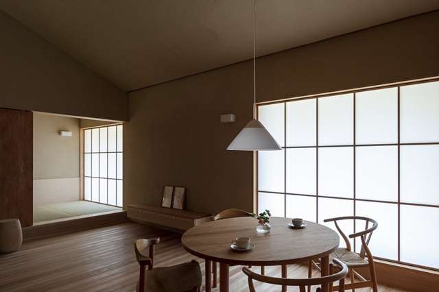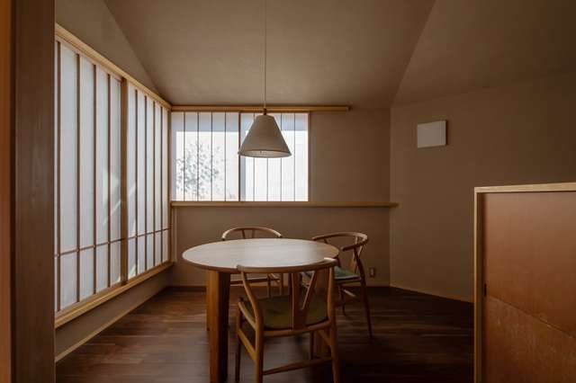 紙障子の窓が柔らかく落ち着いた光をもたらす
