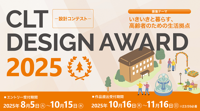 日本CLT協会(東京都中央区)は、「CLT DESIGN AWARD 2025 -設計コンテスト-」を開催する。エントリー受付期間は8月5日から10月15日、作品提出は10月16日から11月16日まで。