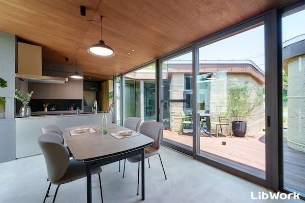 Lib Work(熊本県山鹿市)は、土を主原料とした約100平米の3Dプリンター住宅「Lib Earth House model B」を同市内鹿央町に完成させた。