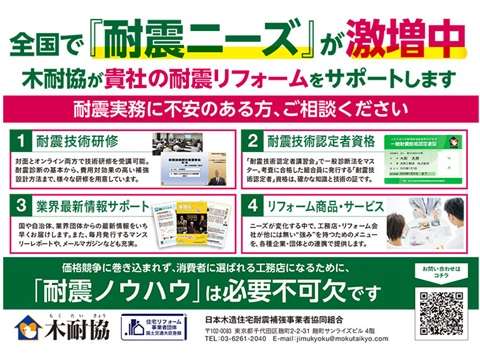 耐震の基本や診断・補強技術などを学ぶ耐震技術研修や、ニーズの変化・多様化に対応したリフォーム商品・サービスのほか、毎月の会報誌やメールマガジンでは国や自治体などからの最新情報を発信。防災リフォームや金融セミナーも開催している。耐震技術認定者講習会はeラーニングも一般公開し、時間や場所を選ばずに受講ができるようになっている。8月5日に、第3期の2025年耐震技術認定者講習会(eラーニング)の受付を開始した。詳細はこちらから。