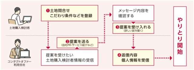 同社の「不動産情報サイト アットホーム上」で「住宅用地」か「建築条件無」の土地に問い合わせをした利用者に対し、該当エリアの工務店などが自社PRやサービス紹介を送信できる。利用者が提案を受け入れると、連絡先が工務店に開示され直に連絡を取ることが可能になる。