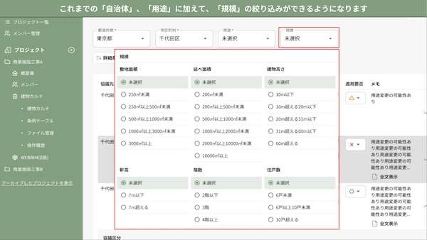 「建物カルテ」条例検索に規模の絞り込み機能を追加