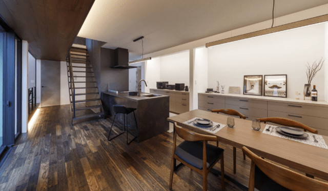 素材の面では、素足での心地よさを重視した無垢のオリジナル床材や、調湿・消臭効果を持つしっくいを施工。加えて、高性能換気システム「PROnAIR」により室内空気の質を保ち、セルロースファイバー断熱材や、外壁にはALCパワーボードを用いることで、快適性と静粛性を両立させた。構造は許容応力度計算に拠る耐震等級3を確保した。