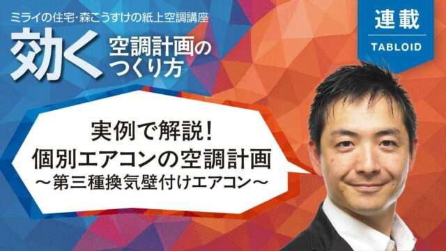 住宅の高性能化が進む中、空調は住まい手任せにせず、設計者がきちんと設計することが重要になっています。本連載では森こうすけさん(ミライの住宅代表理事)が、住宅における空調設計のノウハウを解説。第4回目はいよいよ事例。個別エアコンについて解説します。(毎月30日号掲載)