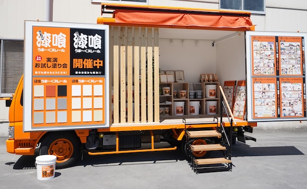 そこで、トラックを使った漆喰ショールームを考案。顧客が希望する場所に移動し、駐車した場所で漆喰体験ができる機会を提供することにした。