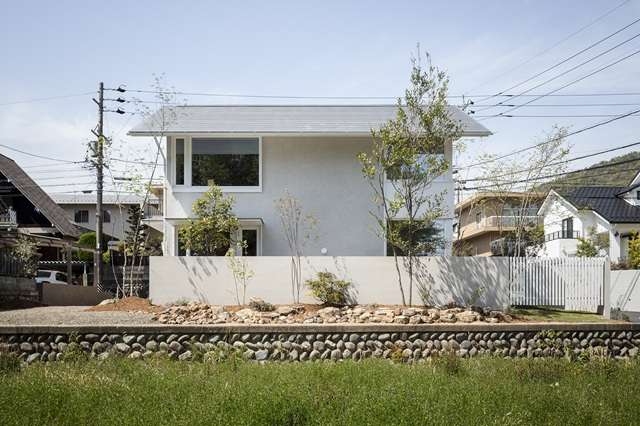 切り妻屋根の箱という形態は「おうち」の原点のような寡黙な形であるだけに、中に入ったときの対比的な驚きや新鮮さなどは、ほかの形の外観ではなかなか得がたいものです。