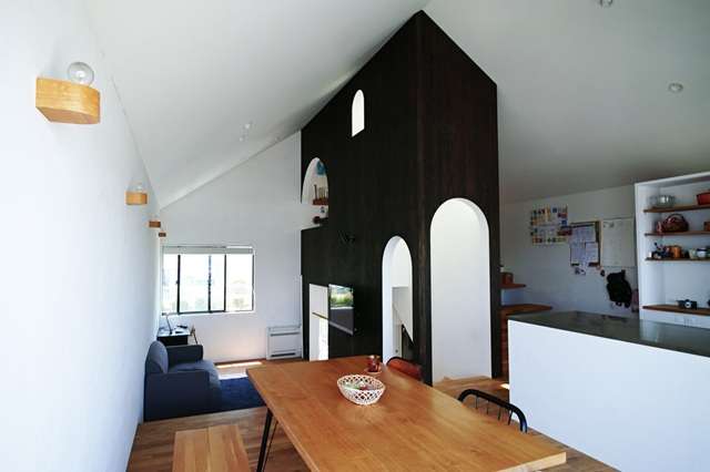 外観はシンプルで寡黙な表情の住まいだけれども、中に入るとまるで別世界のように賑やかで楽しい。そんな住まいがあったら、きっと家に帰るのが毎回楽しみになってしまうでしょうね。