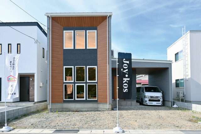 標準工法とするジョイ・コス住宅システムによって新築した五十嵐建築のモデルハウス。加藤建築が特許取得済みの全館空調システムを初めて導入した