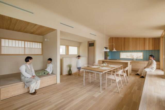 瀬戸内海や鷲羽山など地域を代表する美しい景色を見渡せる2階LDK。豊かな自然を取り込む自然素材に包まれた空間が、家族の伸びやかで心地いい暮らしを支える
