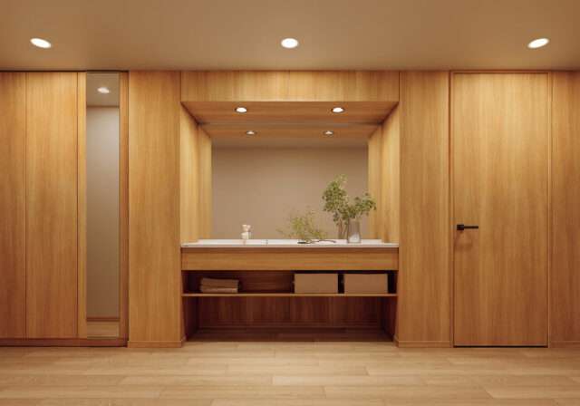 顧客のニーズの変化とともに、洗面化粧台の用途も多様化。従来の洗面、化粧のほか、スキンケア、乳児の沐浴、生け花、アイロンがけ、さらには洗面カウンターをデスク代わりにリモートワークするというケースも同社の調査で明らかになった。従来は脱衣所が定番の設置場所であったが、玄関やリビング回り、居室などデザイン性が求められるところにも設置したいというニーズが高まっているという。