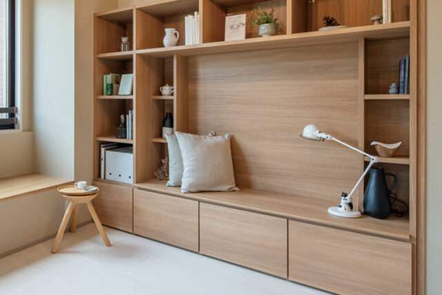 キッチン横の窓辺には、腰掛けできるスペース「ヌック」が設けられた。カフェにいるかのように、ティータイムを楽しめる。コンパクトながら、ぜいたくな気持ちになれるスペースだ。