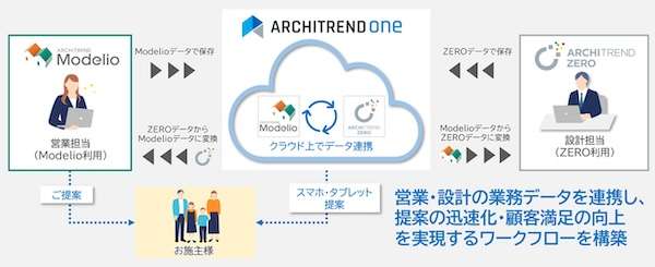 「アーキトレンドワン」との連携にも対応し、クラウド上でデータ共有・利用が容易に行えるようになった。これにより、営業と設計が互いに作成・編集したデータを最大限に活用することができ、提案の迅速化と顧客満足の向上が期待できるとする。