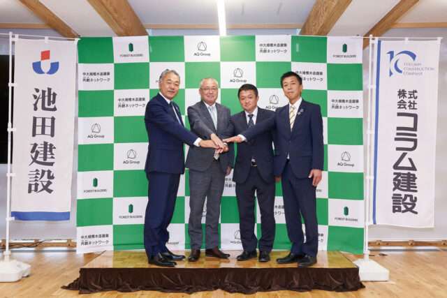 AQグループ(埼玉県さいたま市)はこのほど、純木造による中大規模建築の普及を目指す「中大規模木造建築共創〈ともつく〉ネットワーク(通称:ともつくネット)」を発足した。独自構法・AQ木のみ構法を基盤に、全国の地域工務店や建設会社と連携しながら、純木造建築の普及拡大を図る。2027年度末までに全都道府県での加盟を目指し、7月から加盟店の募集を開始している。