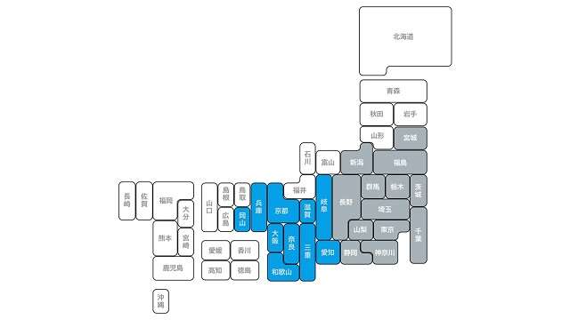 Rニースのリサイクル対応エリア(青:新規/グレー:従来)
