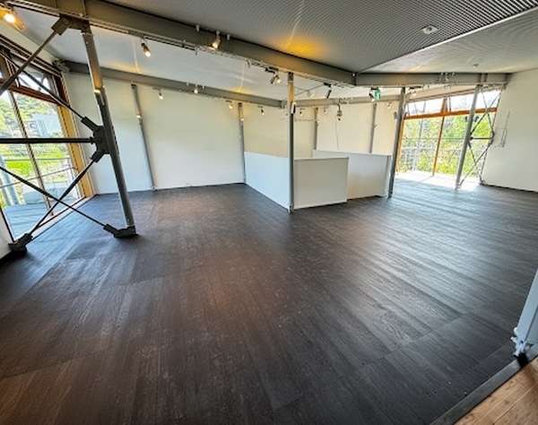 店舗床への施工事例。黒オイル仕上げ