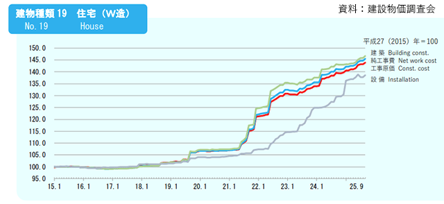 東京都内では、人件費の高騰で塗装工事費や左官工事費が上昇したほか、カーペットや床タイルなどの値上がりで仕上工事費が上昇し、指数を押し上げる要因となった。一方、建築需要の低迷でH形鋼や等辺山形鋼などの鋼材が続落。これに伴い鉄骨加工費などの工事費が下落し、指数を押し下げた。