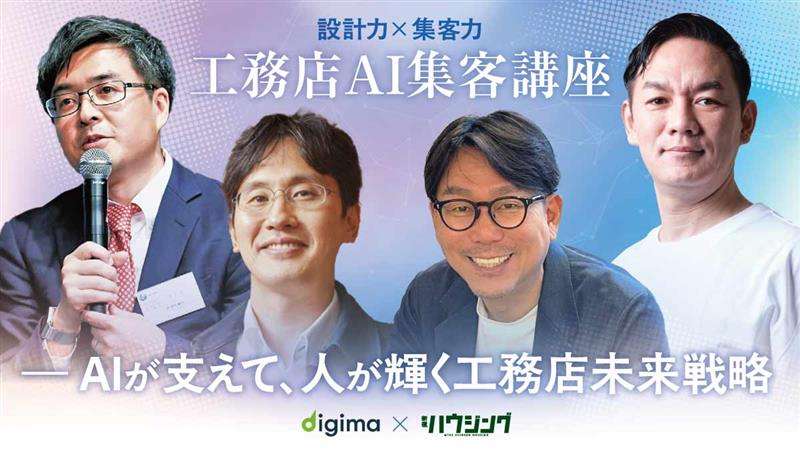 【第一部】松尾和也氏×三浦対談 同質化する家づくり時代ー集客に重要な視点とは 同質化していく家づくり時代に集客で差別化するにはどうするべきか―。 SNSなど活用しつつも、なかなか表現が上手くいかない中、「AI」を活用することで工務店にとってどんな効果を得ることができるのか。 設計者目線で魅せる集客視点とAIの活用についての戦略を考えていきます。 【第二部】プロホーム・大台 神戸中年則氏 集客受注難の中での成長戦略 設計力を魅せ、digimaを活用しながら集客を成功している事例をご紹介します。 コロナ禍で集客が低迷した時からのV字回復までお話いただきます。 【第三部】コンベックス・美里泰正氏 digimaによる集客術とAI戦略に向けて 来場前に選ばれ、他社と差別化するには―集客メールの工夫が重要。 美里氏が考える「ポールポジション戦略」とAI活用を考えた戦略について解説します。 【第四部】ディスカッション 集客・受注に向けた未来戦略 第一部から第三部までそれぞれの視点から「集客」、「AI」について考えてきました。 改めて今後のAI戦略について、人との役割分担についてなど未来戦略を考えていく、工務店AI集客についてまとめていきます。 |