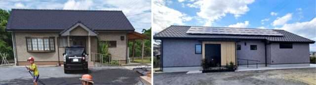 外観のBefore(左)After(右)。太陽光発電の製品代が実質0円で設置できる「建て得」を採用