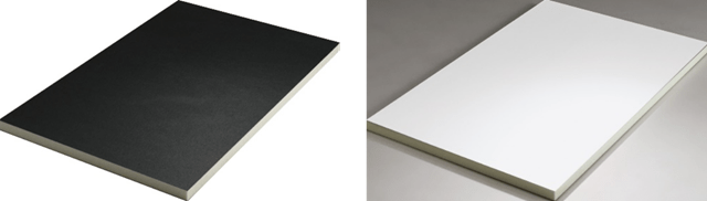 SuMPO EPDを取得した高密度アキレスボードGFノンフロン(左)とアキレスボードWAL-D