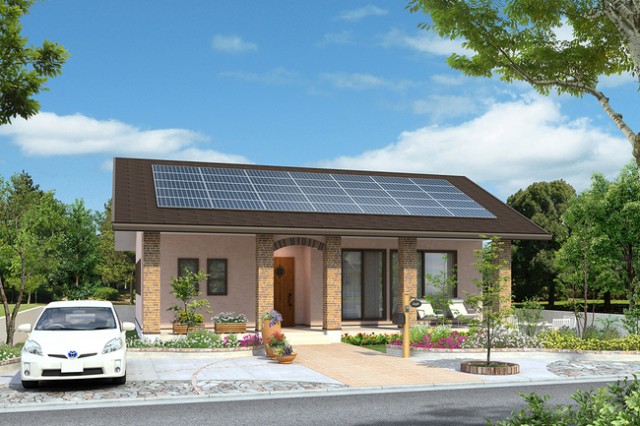 高断熱(Q値1.50程度)かつ温度差のない空気環境を実現。南向き屋根には、標準で7~10kWの太陽光発電システムを搭載できるとする。販売エリアは関東、新潟、長崎。販売価格は、太陽光発電込みで2000万〜2500万円を予定。