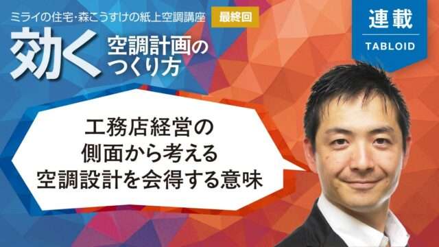 住宅の高性能化が進む中、空調は住まい手任せにせず、設計者がきちんと設計することが重要になっています。本連載では森こうすけさん(ミライの住宅代表理事)が、住宅における空調設計のノウハウを解説。最終回は空調設計を会得することの意味を、工務店経営の側面から考えてみましょう。(毎月30日号掲載)