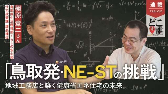 「どこ誰」の実現には、地域で頑張る工務店を、社会全体で支える体制が欠かせません。第3回は、国の省エネ基準を上回る断熱性能に加え、国が数値基準を設けていない気密性能(C値)も条件とする認定制度「とっとり健康省エネ住宅(NE-ST)」を創設し、地域工務店と連携して健康で快適な住宅の普及に貢献する鳥取県の事例を紹介。その立役者である住宅政策課の槇原章二さんにお話を伺いました。