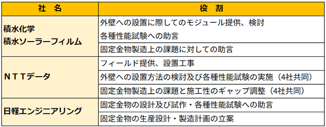各社が今回のプロジェクトで担当する役割は次の通り。