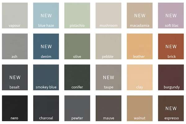 今回、約9年ぶりに色改定を実施。全24色のうち8色を刷新し、アースカラーを中心とした色味を加えた(マカデミア、トープ、ブリック、ブルーヘイズ、ソフトライラック、バサルト、エスプレッソ)。木材のほか、石、テラゾー、真鍮など、多彩なマテリアルと調和する。