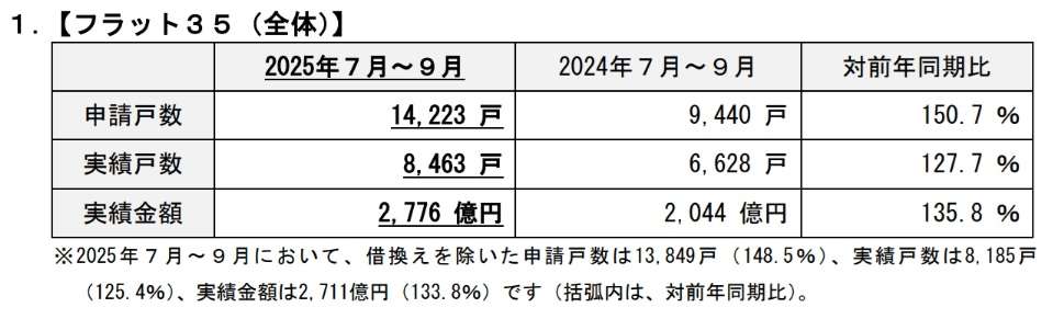 住宅金融支援機構(東京都文京区)は、今年7~9月にかけての【フラット35】の申請状況を発表した。