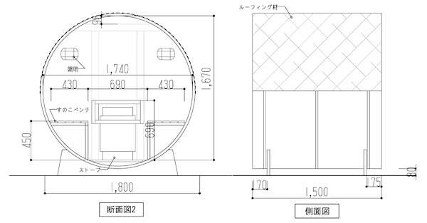 樽型のバレルサウナの主力商品「MODU4」(幅1800×奥行1800mm)よりひと回り小さいサイズ(幅1800×奥行1500mm)で設計。