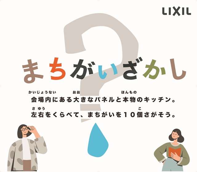 LIXIL(東京都品川区)は、浄水カートリッジの模倣品・互換品注意喚起に関する親子向けの体験型イベント「誰も見つけられない!?おうちの安心を守ろう!リアルまちがいさがし」を、11月19日~11月23日の5日間、有明ガーデン2階 中央吹抜広場(東京都江東区)にて開催する。参加費無料。