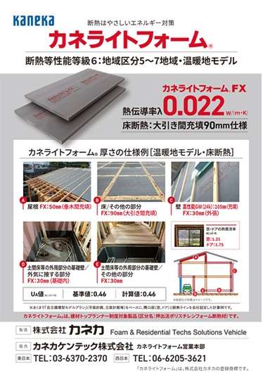 カネカケンテック(東京都千代田区)は、住宅のさらなる高性能化に対応できる商品として、高性能断熱材「カネライトフォームFX」(製造:カネカ)を工務店に提案している。