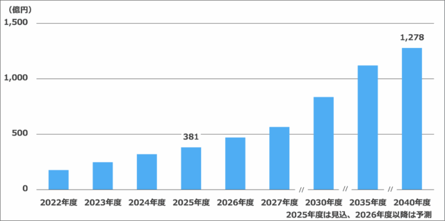 総合マーケティングビジネスを展開する富士経済(東京都中央区)は、太陽電池関連市場の調査結果を「2025年版 太陽電池関連技術・市場の現状と将来展望」として発表した。調査によると、国内市場では再生可能エネルギー政策の推進や電気料金の高騰を背景に、「住宅向け初期費用ゼロモデル」が2040年度に2024年度比で4.0倍の1278億円に達する見通し。これに加え、関連する各分野で大幅な成長が期待されている。