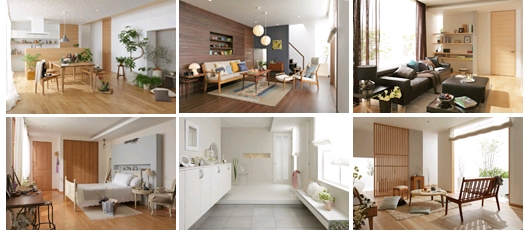 挽き板フローリングや、天然木の持つ豊かな変化をモチーフに美しくグラデーションで表現したシートを採用。ライフスタイルにあわせ、6つのインテリアスタイルを提案する。