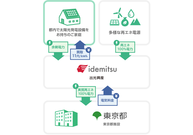 このプランは出光興産が供給事業者となり、通常の買取価格9.5円/kWhに都が1.5円/kWhを上乗せし、計11円/kWhで買い取る制度。卒FIT電力を都有施設で有効活用する目的で2020年から開始した。買い取った電力は、都有施設に設置された太陽光発電設備の電力と合わせて、都立特別支援学校や廃棄物埋立管理事務所に供給される。