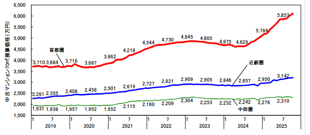 東京カンテイ(東京都品川区)が11月20日に発表した10月の首都圏における中古マンション70㎡あたりの平均価格は、前月比1.6%増の6115万円となり、15カ月連続の上昇となった。