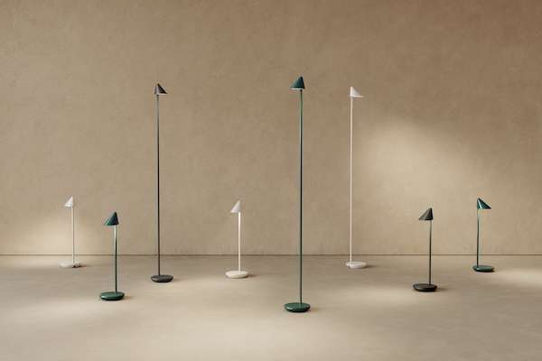 H456×W134×D134mmのデスクライトと、H1156×W134×D134mmのスタンドライトの2種類をラインアップ。白、マットブラック、グリーンの3色をそろえ、それぞれに独自の仕上げをほどこした。