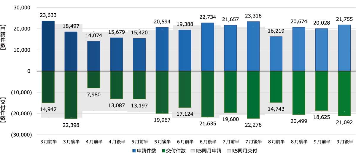 5月後半以降は申請数と交付件数の差が縮まり、時期による差はあるものの申請と申請件数の1割程度に収まっている。また省エネ適判も、5月後半以降は受付件数と交付件数がほぼ同程度で推移しており、件数だけを見れば大幅な混乱は起きていないように思われる。