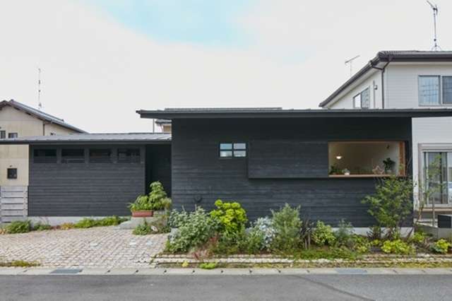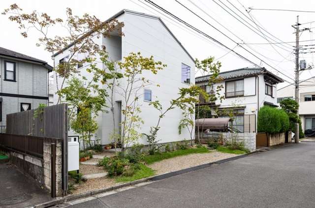下の2軒も同じ設計者による住まいです。いずれも道路からとても効果的に住まいの「引き」をとっています。