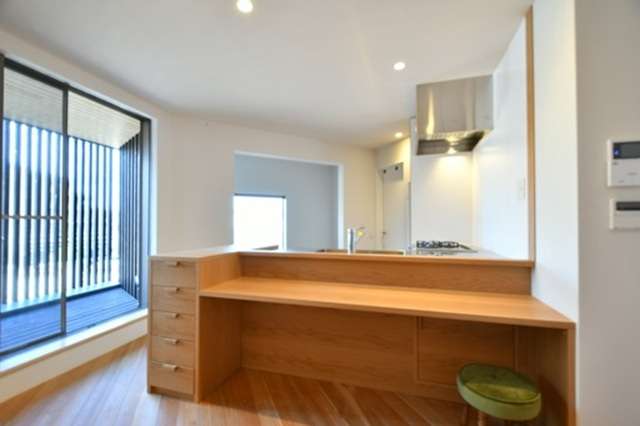 道路境界線側はどうしても塀やフェンスなどで仕切ってしまいがちですが、必ずしも仕切らなくても境界線から少しだけ住まいを奥まらせることで、ちょっとした外の場所を作り出すことができます。