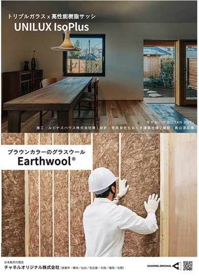 チャネルオリジナル(横浜市)は、断熱性能と環境性能を両立する建材を提案している。ドイツ・クナウフ社製の高性能グラスウール断熱材「アースウール」は、リサイクルガラスを主原料に、ホルムアルデヒドを含まない植物由来バインダーを採用。施工時のチクチク感や粉塵が少なく、快適な作業性を実現する。優れた断熱性能に加え、生活音や外部騒音を吸収する吸音性、不燃性も備え、健康・環境に配慮した次世代断熱材。自然なブラウンカラーは染料不使用で、安全性を象徴している。